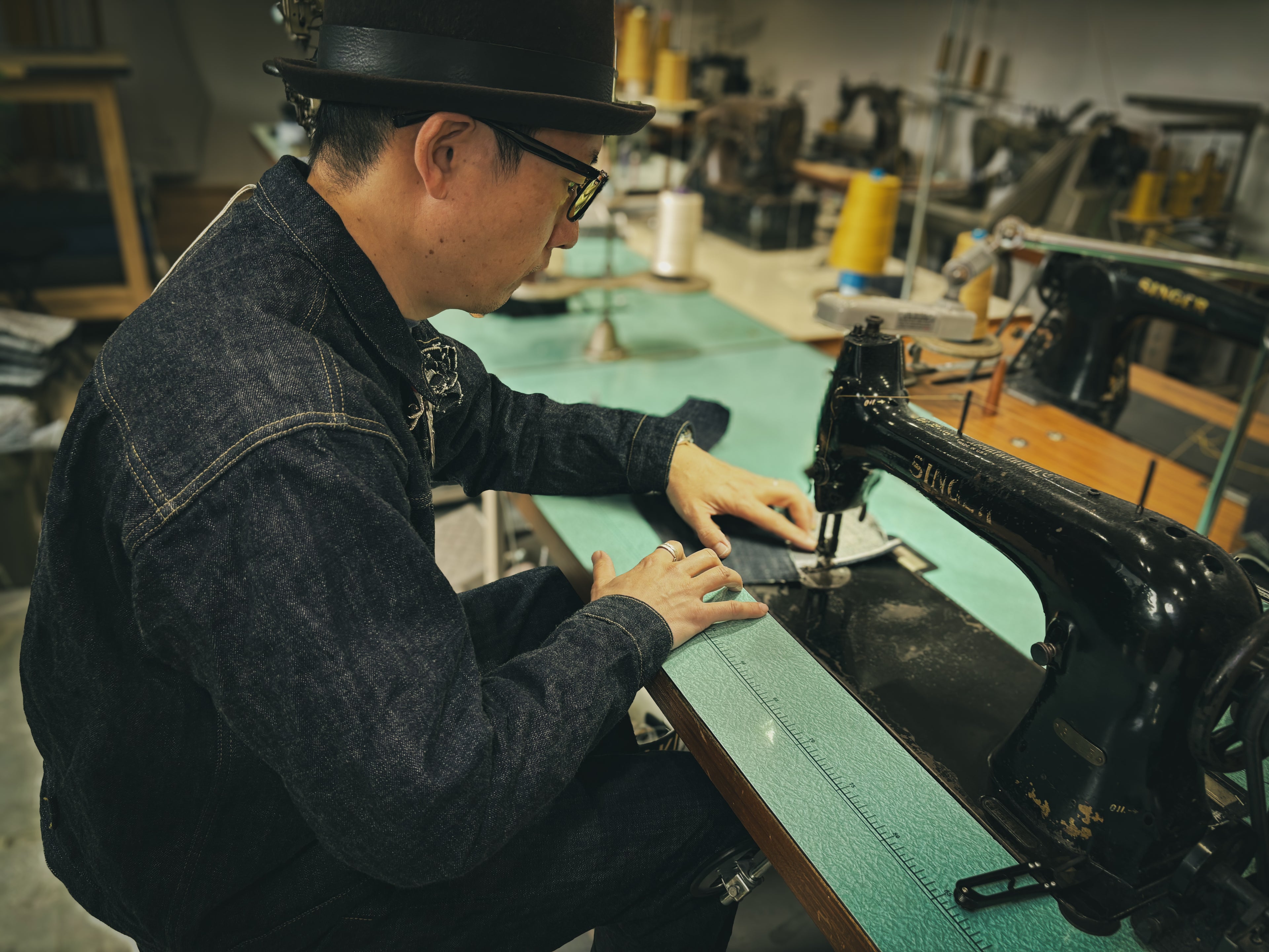当時の技術を現代に甦らせるには、妥協しない素材と職人の緻密な手仕事が不可欠です。岡山などのデニム産地と共同で、当時のセルビッチ生地を再現し、糸色・織り方まで忠実に復刻。